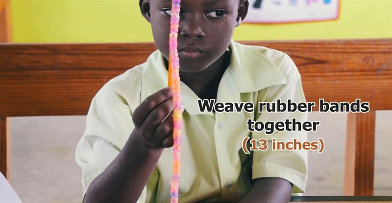 THE STUDENTS PRODUCED A PENCIL LEASH MADE OUT OF RUBBER BANDS.